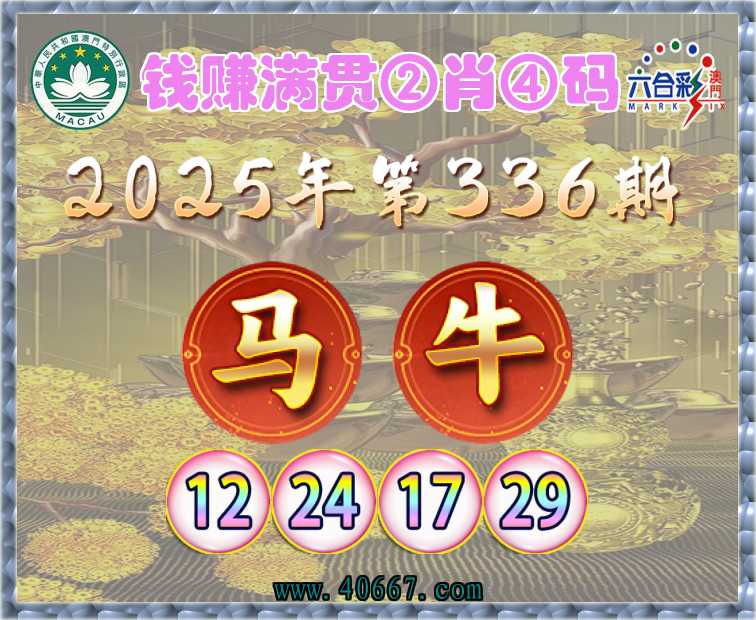 336期:《钱赚满贯》 🎆②肖④码🎆【马】【12.24.17.29】开:牛17
