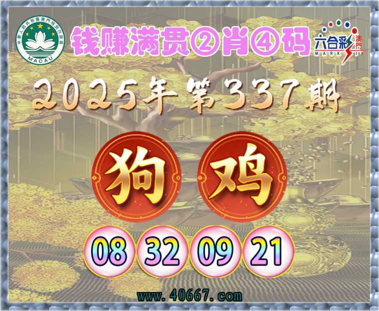 337期:《钱赚满贯》 🎆②肖④码🎆【狗】【08.32.09.21】开:鸡09