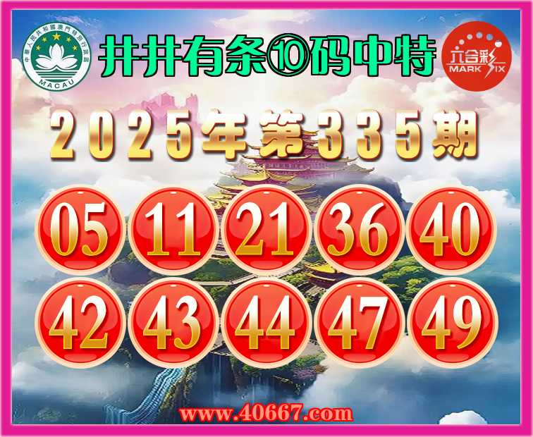 335期:〖井井有条〗 🏅⑩码中特🏅开:44